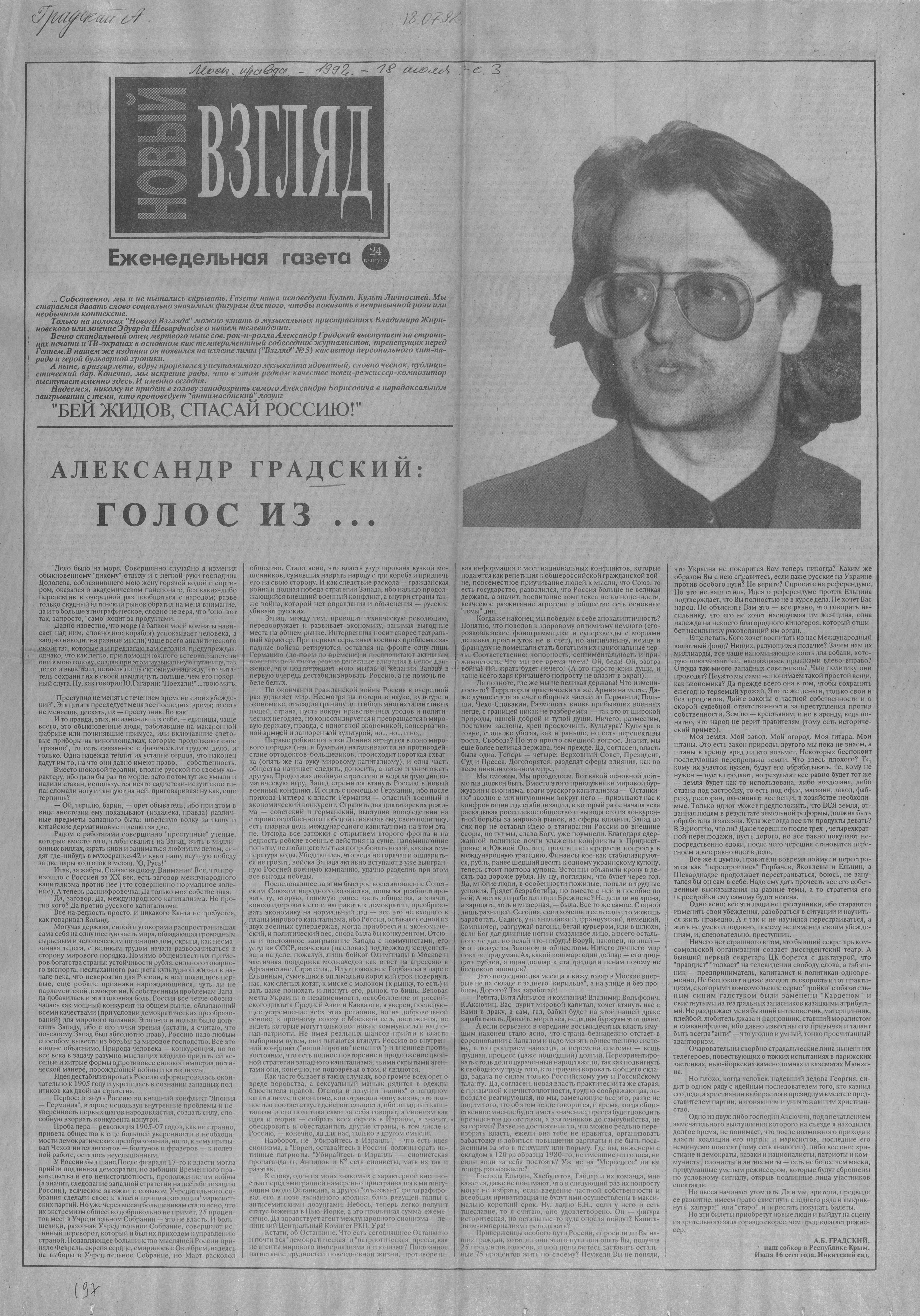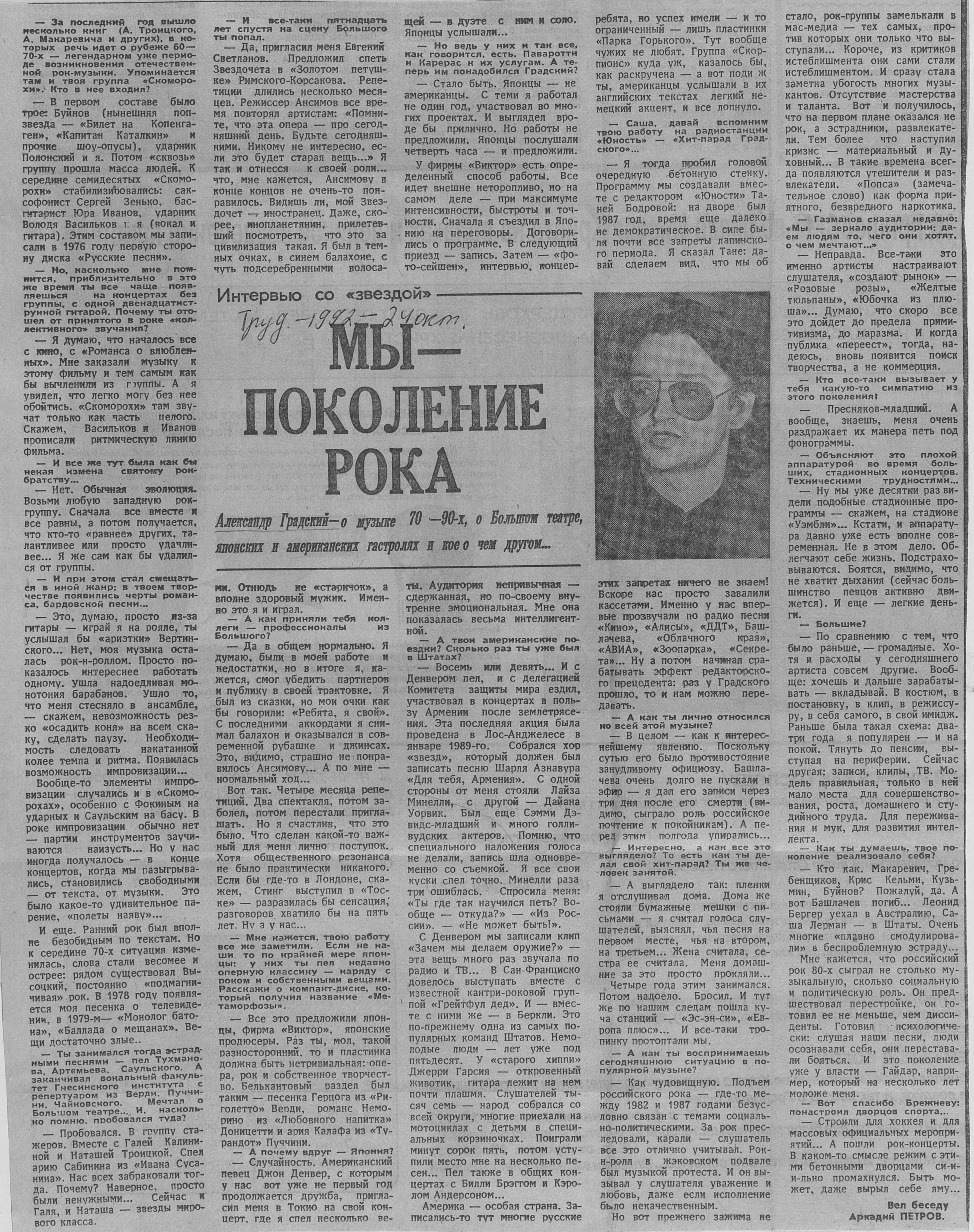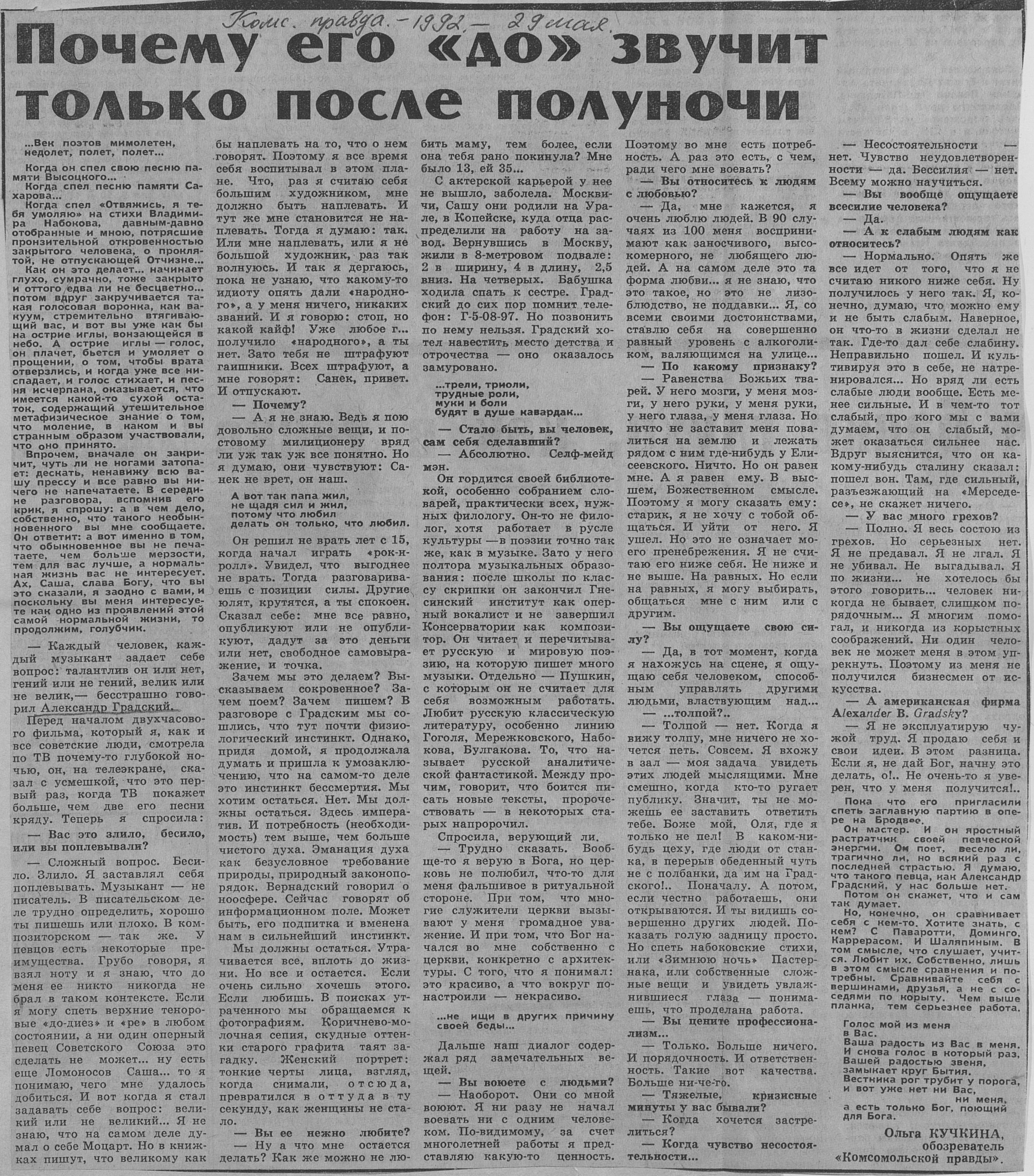 Ещё цитата от Градского: